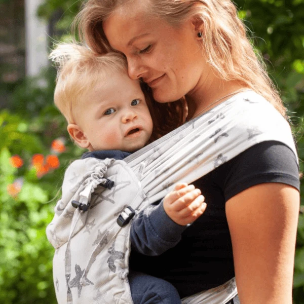 Se avete le spalle strette o avete spesso problemi al collo, le larghe cinghie della gobba Hop-Tye forniscono una perfetta distribuzione del peso sulla spalla e alleviano i muscoli del collo. Particolarmente sicura: la cintura dell’anca è chiusa con una fibbia di sicurezza.